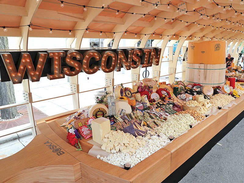 The cheese board included 4,437 pounds and 145 different varieties, types and styles of Wisconsin’s specialty and artisan cheeses, with national and international award-winners among them. This one-of-a-kind display centered around a 2,000-pound Henning’s Cheddar wheel, which was surrounded by everything a true cheese connoisseur could imagine, from blue-veined and cave aged Cheddars to fresh Feta, squeaky curds and hand-rubbed wheels to pungent Brick and even the 2017 U.S. Cheese Champion, Sartori Black Pepper BellaVitano, among others.