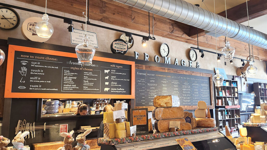 Although the shop primarily features Wisconsin products, Fromagination frequently offers guests the opportunity to sample cheeses from renowned producers in regions, like Vermont, Minnesota, California, Italy, France, England and the Netherlands.