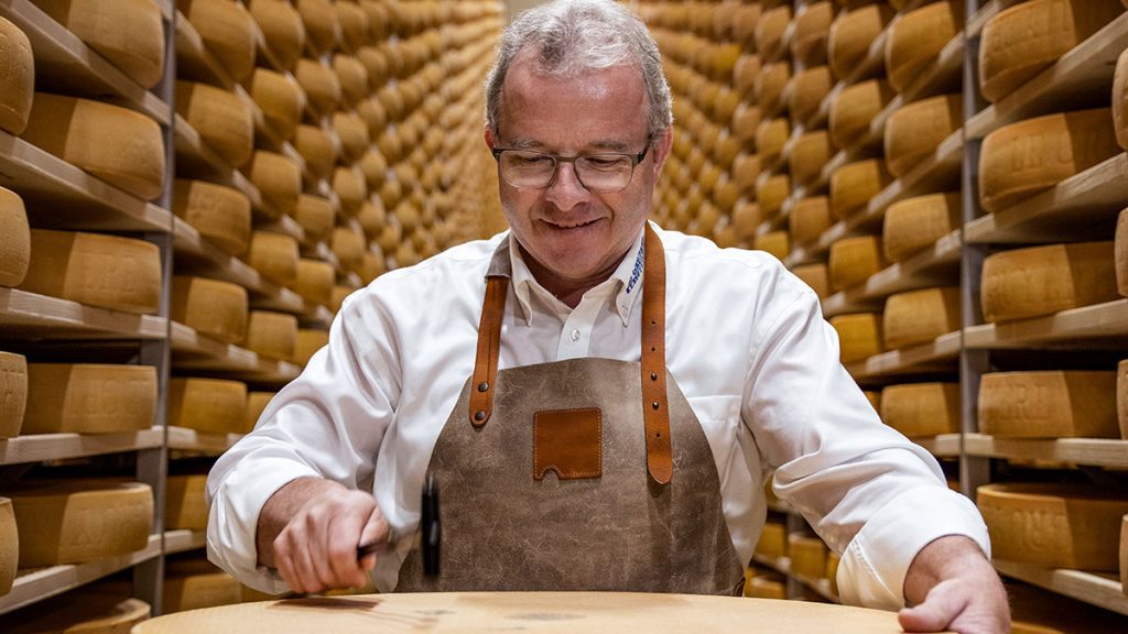 After three months, the young wheels are ready for the affineurs, who come to carefully inspect each one, ensuring it meets the rigorous AOP specifications. “We work with dairy farmers and producers who make the cheese according to the highest standards,” Schilt explains.