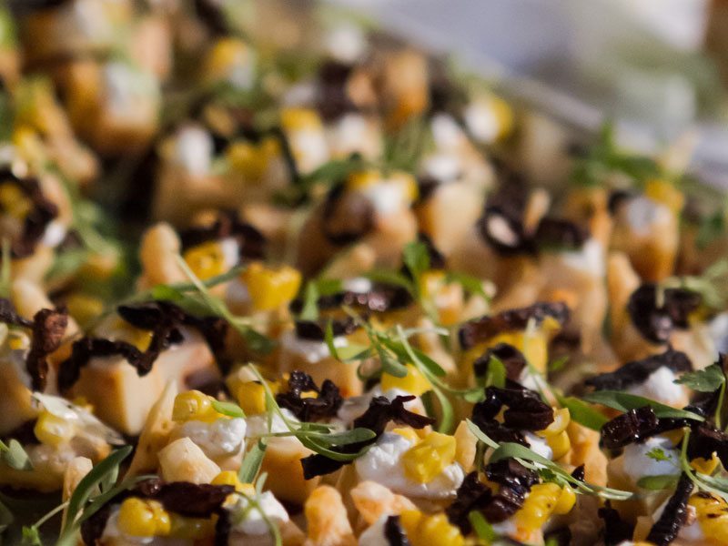 Reilly’s foray into textural balance was the most eye opening for me. After making a nacho “chip” out of dried and puffed cheese, he topped it with, of all things, Mexican crema (his play on sour cream). One would assume that cream atop cheese would just be overkill. But the thick palate coating texture of the crema actually spread the chipotle-imbued flavors of his crispy cheese chip.